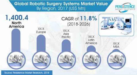 Robotic surgery has the basic advantage of performing complex surgeries with utmost precision, that too, in the anatomical areas tough to be reached by the surgeons. Thus, the healthcare vertical is being driven by automation. Intuitive Surgical Inc. has its da Vinci surgical system, which is amongst the well-known robotic surgical systems across the globe. Zimmer Biomet, in January 2019, did receive clearance from the US FDA for ROSA Knee System with respect to robotically-assisted total knee replacement surgeries.