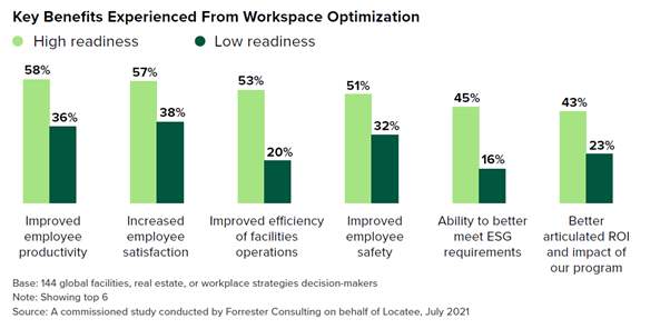 Data insights will enable workplace leaders such as Employee Experience managers and Corporate Real Estate Managers (CREMs) to optimise the in-office experience for workers as a way to make in-person working more appealing to home workers. A commissioned study conducted by Forrester Consulting on behalf of Locatee found that companies that had optimised their workplace data insights and data management saw it as a key contribution towards improved employee productivity and increased employee satisfaction compared to companies that have not optimised their workspaces.